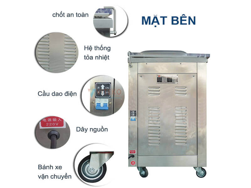 Máy hút chân không DZ400 là dòng máy hút chân không thực phẩm công nghiệp chiều Dài x Rộng x Cao lần lượt là: 58 x 58 x 94 cm, trọng lượng 70 kg.